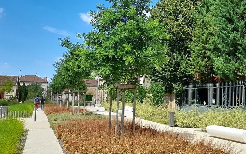 - Rafraîchir les parcours pour favoriser les mobilités actives. Végétaliser la voirie devient un levier stratégique, pour favoriser les mobilités actives, inciter à la marche, trottinette, au vélo et éviter le report modal systématique vers la voiture. La place croissante du végétal le long des voies de déplacement permet de rafraîchir l'air ambiant grâce à l'évapotranspiration des arbres et à leur ombrage. Cette démarche nécessite de repenser les plans de circulation et de hiérarchiser les usages selon le profil des rues.